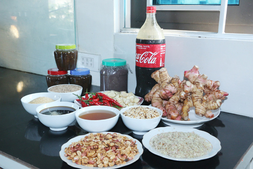 Tiếp đó là các loại gia vị Riềng, Tỏi, ớt được rửa sạch.