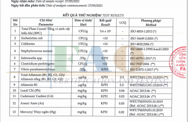 Báo cáo kết quả thử nghiệm sản phẩm Chẻo Bà Châu, số : 210527.10.01