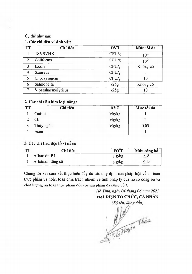 BẢN TỰ CÔNG BỐ CHẤT LƯỢNG SẢN PHẨM CHẺO BÀ CHÂU
